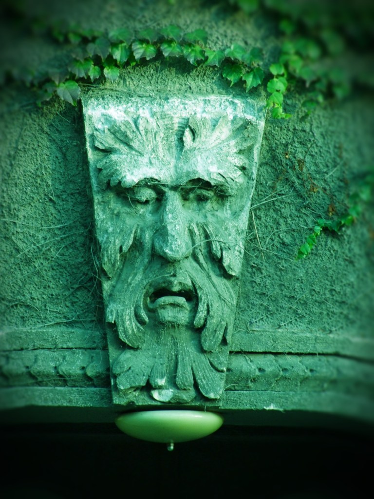 To be honest, I always found something slightly scary about the Green Man’s appearance. In some instances, he looks fatherly, with a beard and knowing gaze as greenery decorates his hair and surrounds his face…but then there are the different types of Green Men with sinister names: The Disgorging Head and the Bloodsucker Head, where green plants spew from either the Green Man’s mouth, or every orifice of his face, including tear ducts (source).