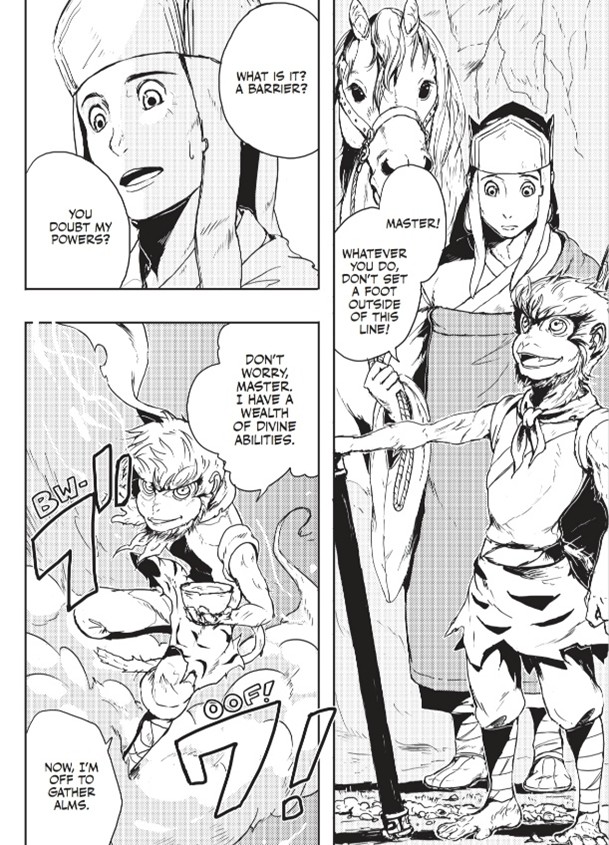 The art is expressive and the action sequences are vivid. ZENZO’s art looks unique to me—eyes are rounder, faces are more distinctive—and maybe it’s because I’ve been buried in BL for months that things have started to look the same, but the art of Bonds is like a breath of fresh air to me. I particularly love Son Goku’s depiction—he manages to flit between being expressively human but entirely monkey-like as well. He is a well-drawn character.