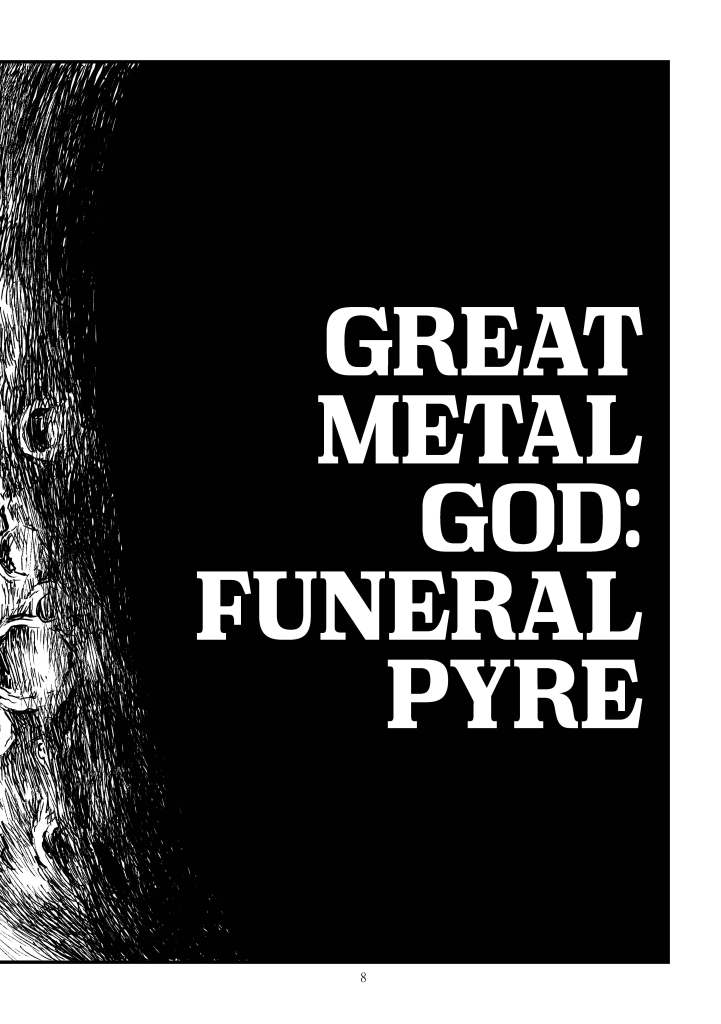 Jump into the cockpit of a sci-fi-like fairy tale of colossal proportions! In GREAT METAL GOD, an unknown steel visitor descends from the heavens, leaving destruction in its wake. Mankind’s struggles are in vain before the metal marauder, however, salvation comes from an unlikely source – an ancient ritual and a young girl’s resolve. Told almost completely without text, instead utilizing page after page of incredible artwork, readers will fall to their knees before the Great Metal God’s advent.