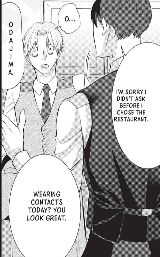 The art kept me on my toes because of how it changes throughout the story. For the most part, Ichigi is depicted with deep bags under his eyes and with glasses, giving him a despondent, geeky look, and Odajima is a typical, well-kempt, handsome businessman. Odajima’s appearance stays lovely throughout the comic, but Ichigi is given some of the funniest facial expressions that shake things up.