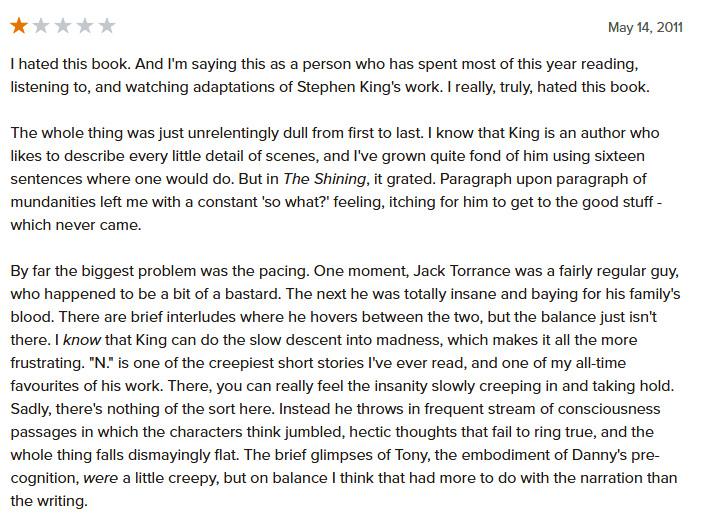 Probably the bigger lessons writers should take away from getting a one-star are: