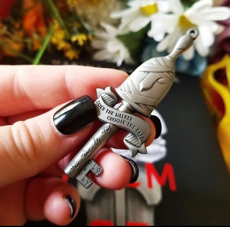 All of the images you see here are (c) Fox & Wit and are available at their web shop. I am someone who collects stickers and pins, which Fox & Wit has plenty of, but the bookmark and key caught my eye in addition to the “villain lover” pin. Here’s where you can get each item: