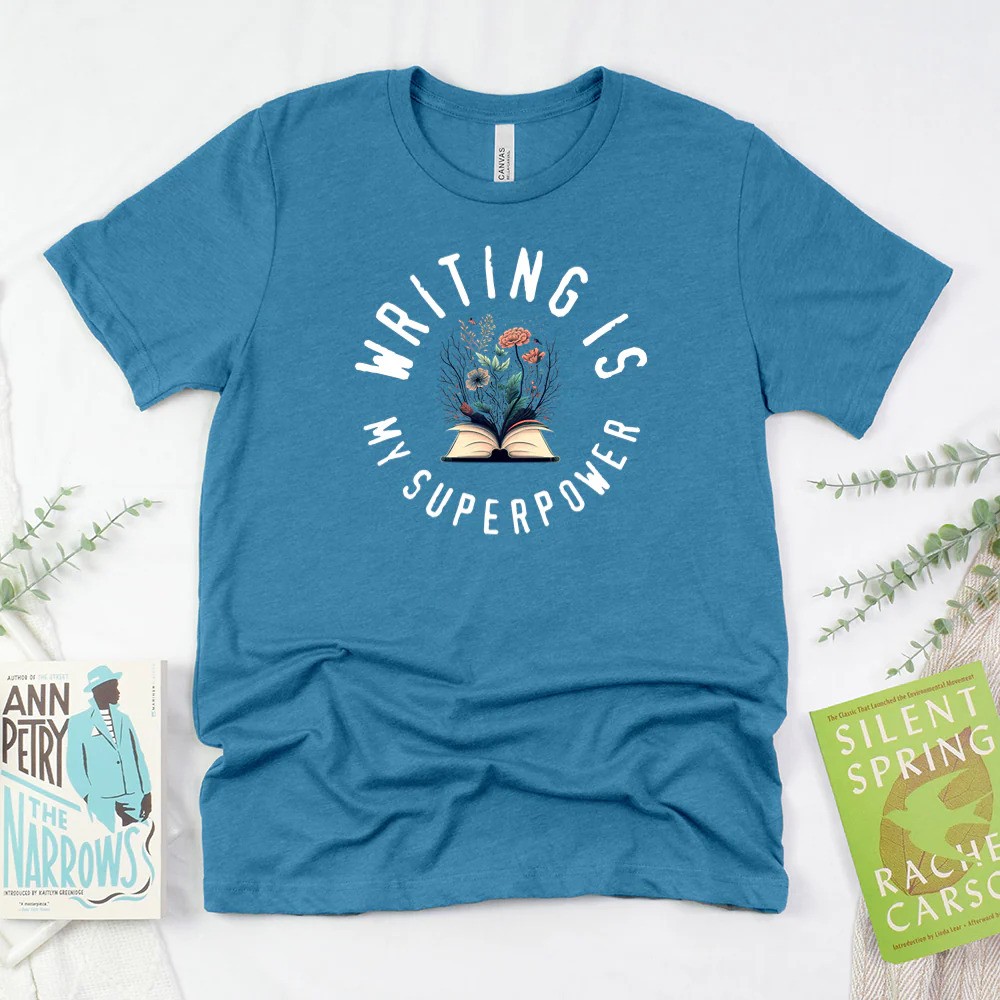 Piper + Ivy is one of my favorite clothing stores. I think I own six of their tee shirts. The quality and fit is excellent and I love the color selection they offer. Most of the shirts I own are about books and reading, but they have some writing tees, too. Here are my top two: