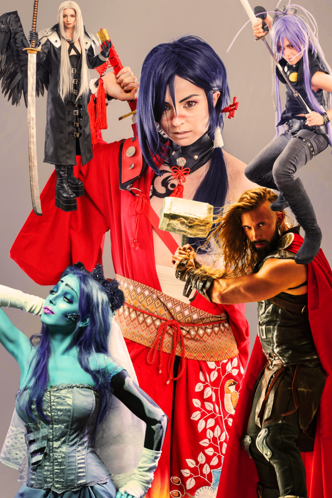 Above are all my best cosplays I’ve ever done. At the top left was my first cosplay: Lust from Fullmetal Alchemist. The middle photo is when I dressed up as Jack Sparrow for Halloween at my Japanese high schools. On the right is my Bellatrix Lestrange costume for Halloween, once again at my high schools in Japan, and lastly, the big picture on the bottom is me dressed as a female version of Edmond Dantes in Gankutsuou: The Count of Monte Cristo. This was the costume I made and presented at Anime Japan in Tokyo.