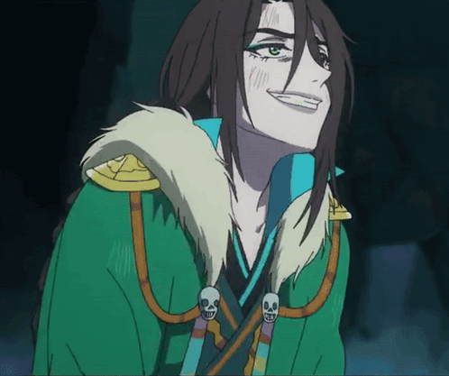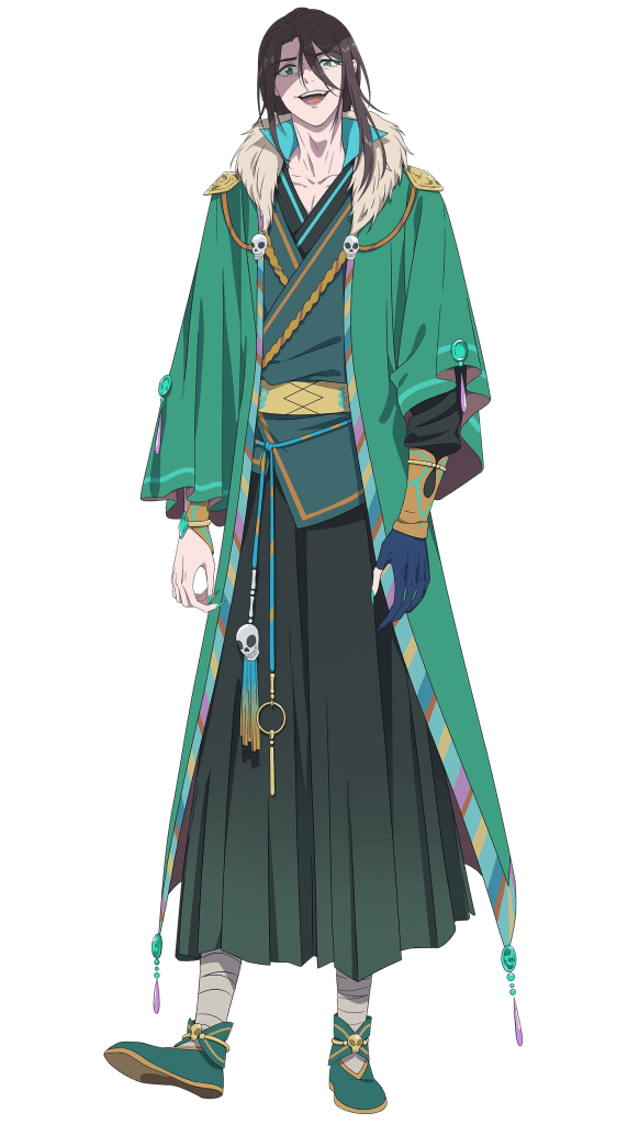 This is Qi Rong, Xie Lian’s totally messed-up, obsessive cousin who happens to be one of the Four Great Calamities–the Night-Touring Green Lantern. This is from season two of the anime Heaven Official’s Blessing. I have also read the books, and everybody hates Qi Rong. He is absolutely nuts and over-the-top. But I love his character design in the anime so much. Here’s his complete look: