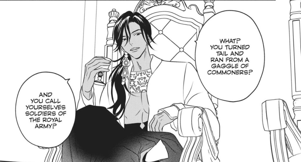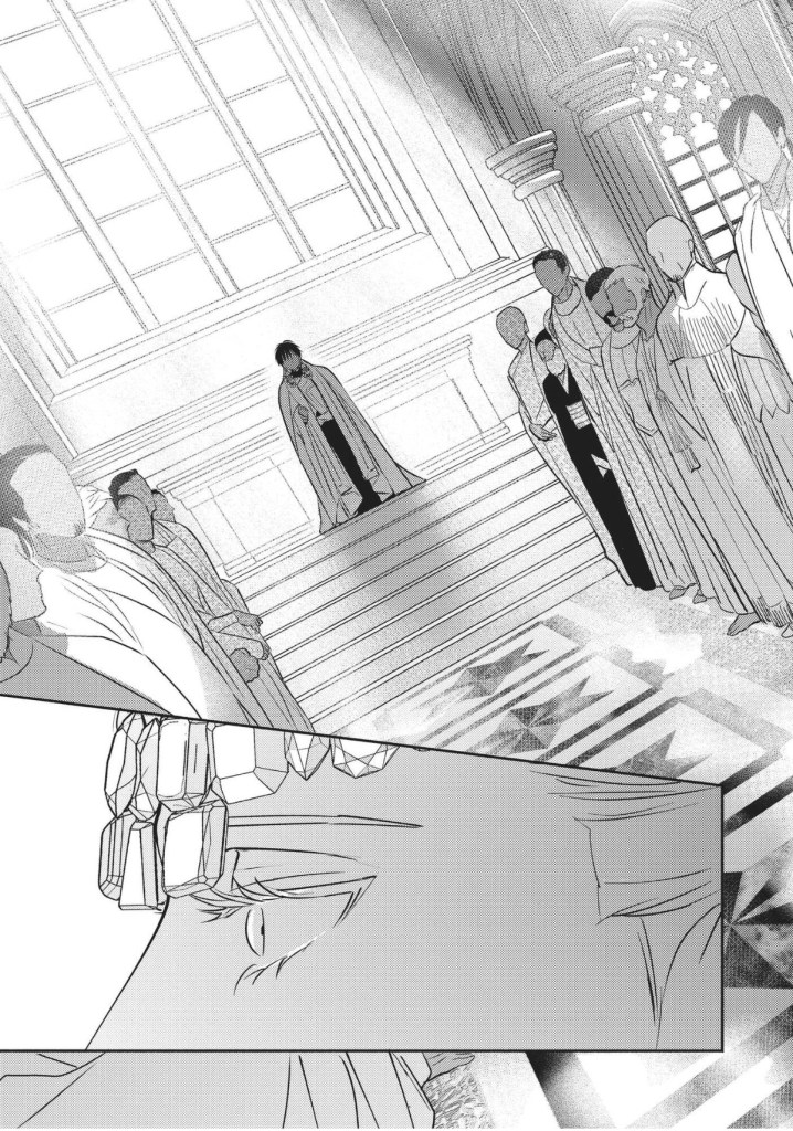 While the story easily draws you in, I have to talk about the character art, set design, and costumes in the manga. This volume is gorgeous. The cover indicates what you can expect in terms of art–elaborate details and striking aesthetics, especially as far as clothing is concerned.