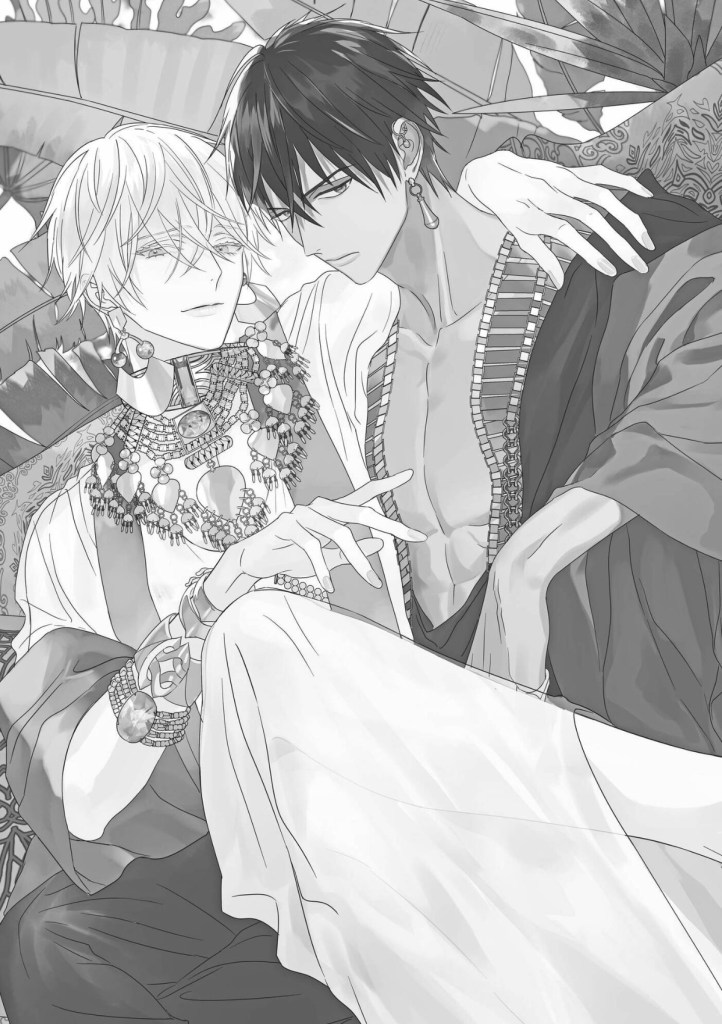 To his surprise, Ilia is welcomed warmly into Hanu, where Omegas have an elevated, venerated status. In the palace, he meets a young boy that he gently teases, until the boy says very seriously, “You’ll see me again.” And this proves true, for the day that Ilia is to be married, he finds his husband-to-be, Khalid, standing in front of him: the little boy he met earlier.