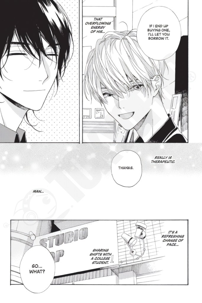 When a rainy night leads to an unexpected encounter, Hoshina finds himself drawn to Seto’s honesty and warmth. But discovering Seto is still in his final year of high school leaves Hoshina spiraling with guilt…
