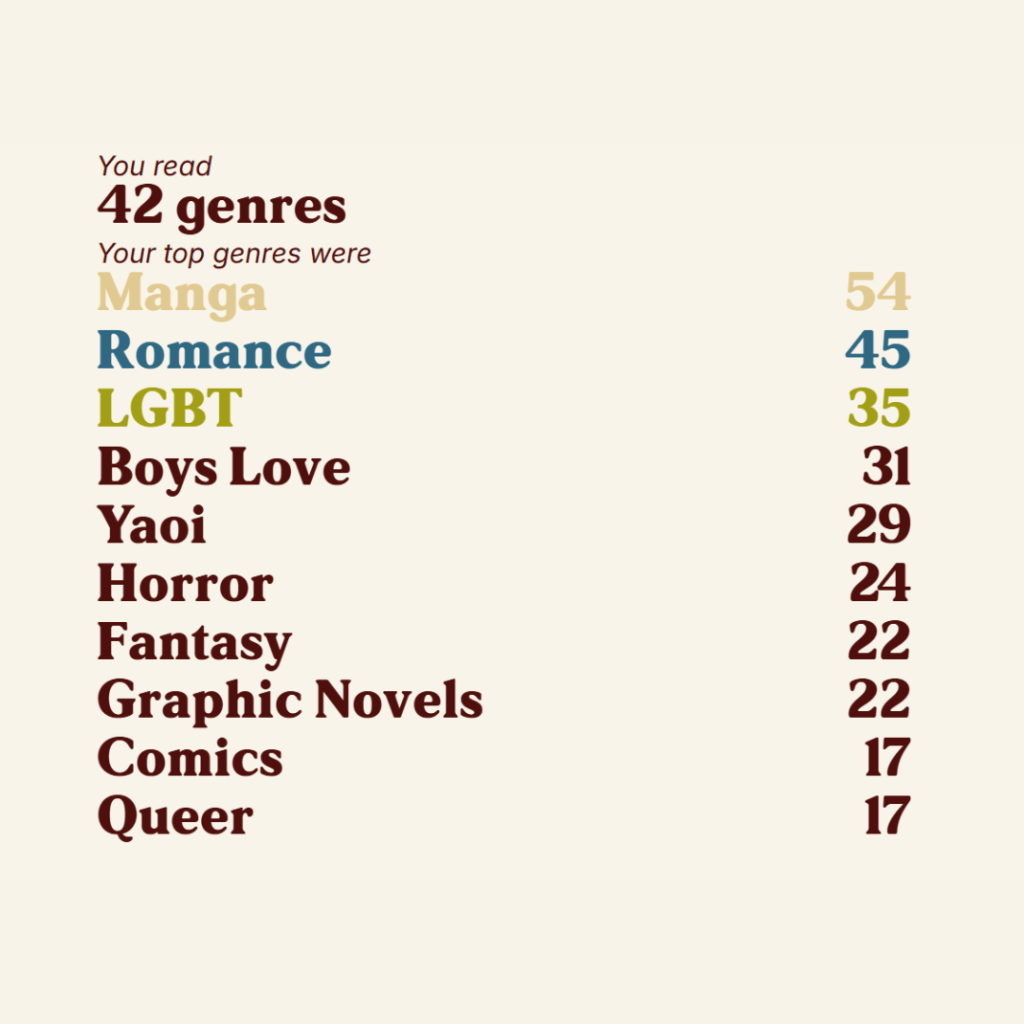 This was pretty fun to look at! Although Goodreads has their Year in Books up, too, it usually takes them a few days to email specially made graphics for social media. Once I get those, I’ll post them here and on Instagram and other places.