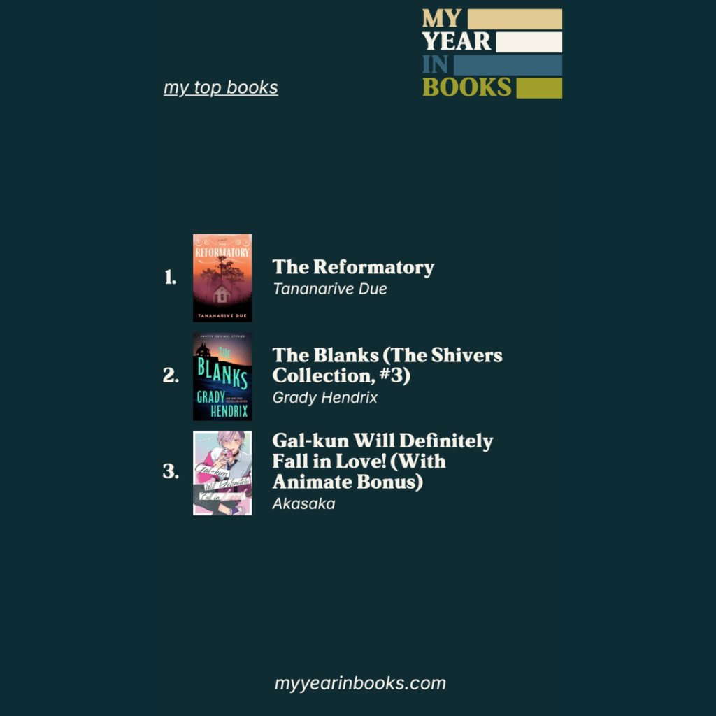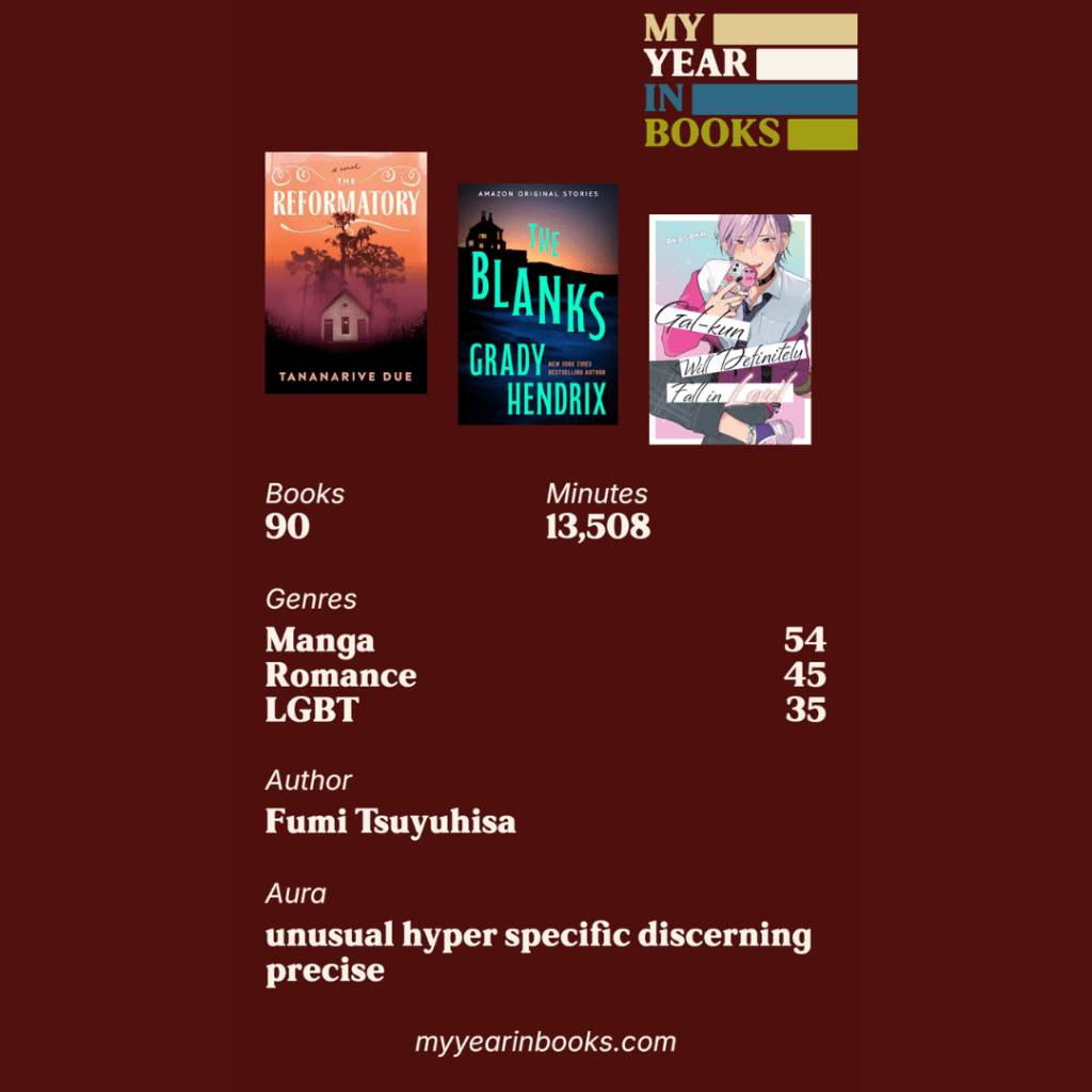 As the year comes to a close, I receive fun data compilations from two sources: myyearinbooks.com and Goodreads. My Year in Books pulls data from your Goodreads, but breaks it down a little differently, which is why I include their year-end summaries in my social media and on this website. Let’s take a look at what My Year in Books specifically had to say about my reading in 2025: