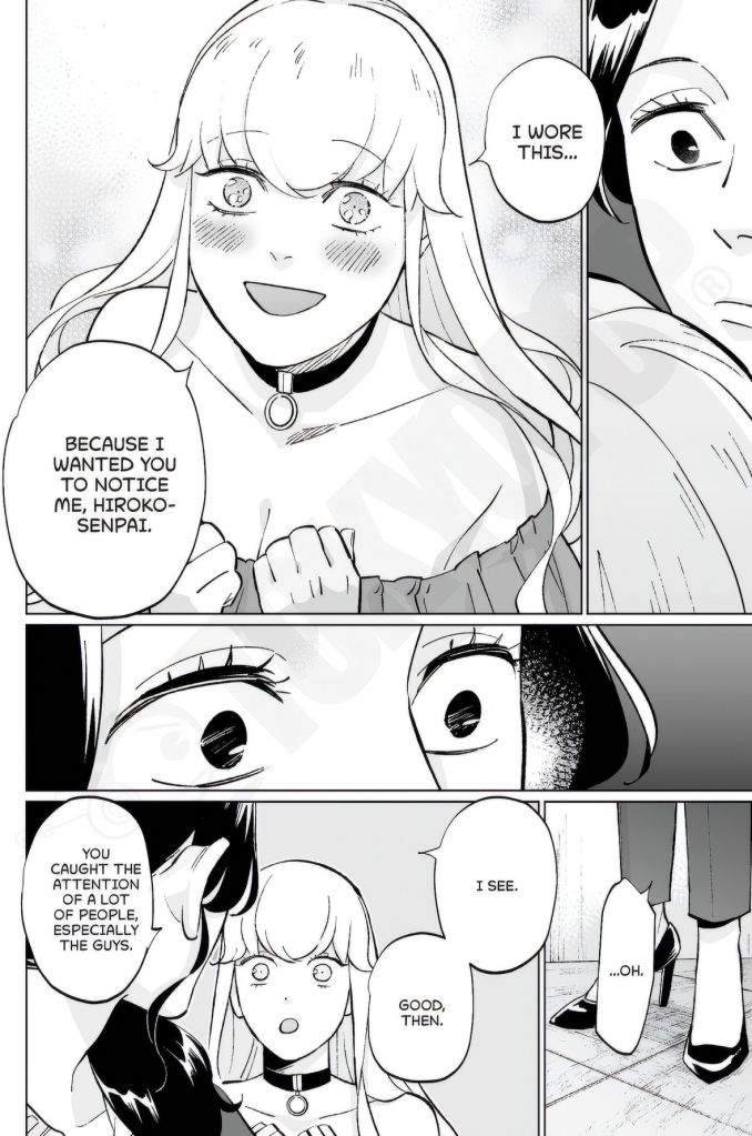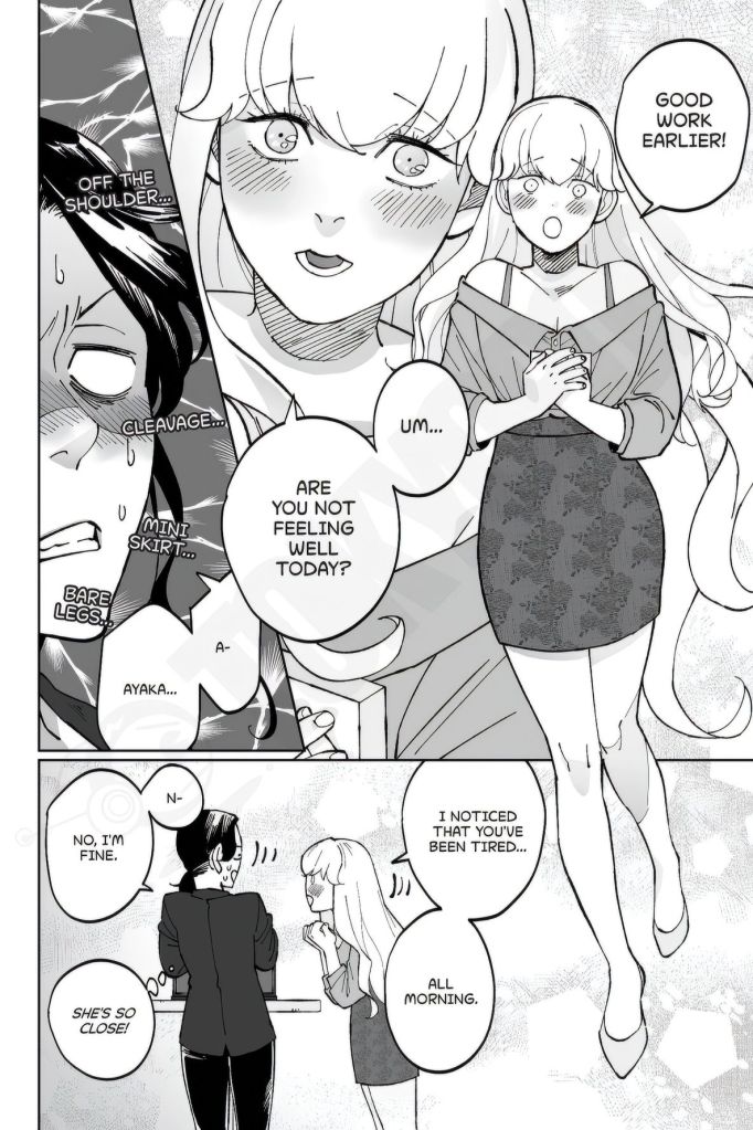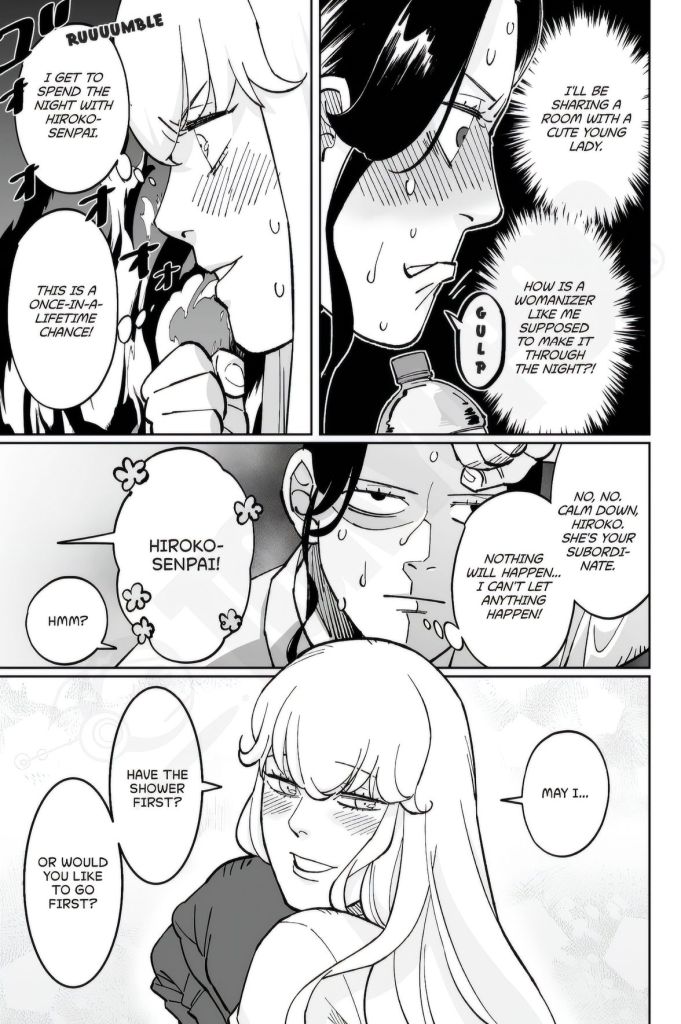 The thing is, Ayaka is totally Hiroko’s type! But Hiroko keeps getting confused by Ayaka’s behavior (even though it’s completely obvious), and on top of that, not only does she think Ayaka is trying to impress her male coworkers, but she also feels like she has to maintain a responsible distance because Ayaka is her subordinate.