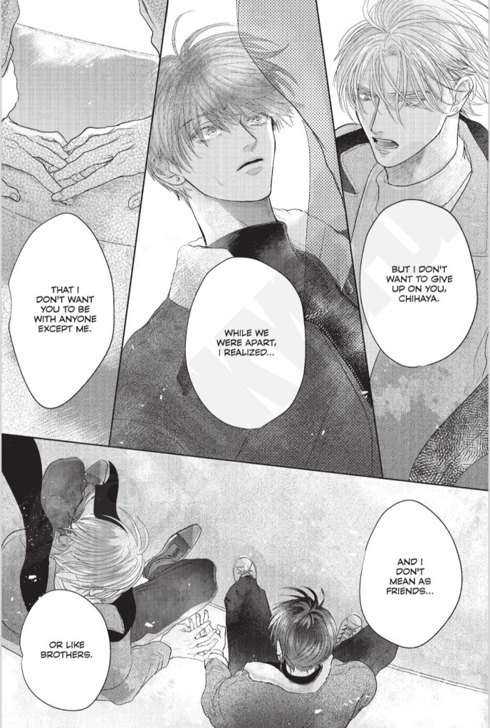 The expectation is that Chihaya works very closely with Shion–he’s even expected to move in with him!! The tension builds with this as the two are antagonistic towards each other at first, then their relationship becomes very, very physical. It turns out neither Chihaya nor Shion have forgotten about the rough night they had with each other three years prior–the thing readers have to wait for is whether or not they can come to terms with it and move beyond it. Especially when Shion expresses romantic feelings for Chihaya. The good news–it happens!