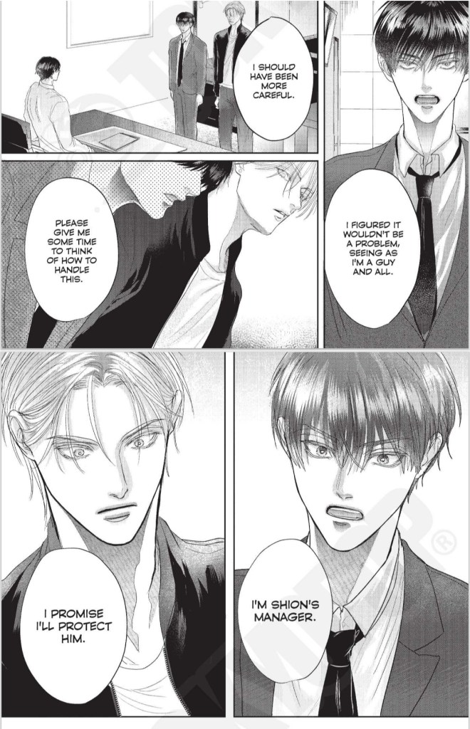 This is quite the sexy BL manga with lots of steamy scenes amid a story filled with delayed love, regret, and the perils of living and working in the spotlight.